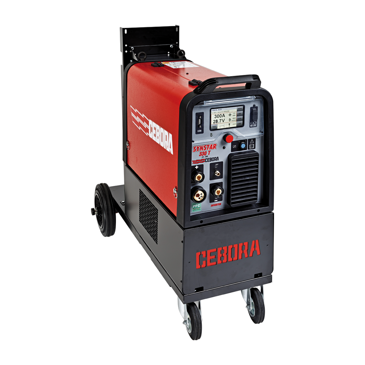 De MIG lasmachine is voorzien van een verrijdbaar onderstel, 4-rols draadaanvoermotor, euro connector, massakabel met klem en Cebora’s PFC module (Power Factor Correction) volgens de norm IEC/EN 61000-3-12. Kortom, de beste 330 Ampère MIG/MAG allrounder op dit moment!