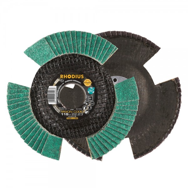 Lamellenschijf met zirkonium. Dankzij haar drie uitsparingen wordt de VISION COOL tijdens het draaien transparant. Dit maakt een voortdurende controle van de werkvorderingen mogelijk.