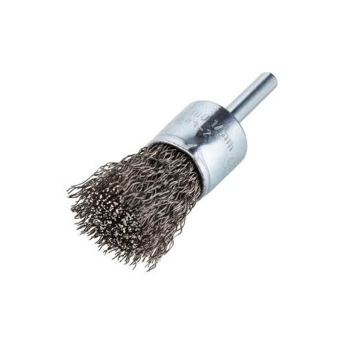 De Rhodius penseelborstel van roestvast staal met gegolfde rvs-draad voor gebruik op rechte slijpers en boormachines.