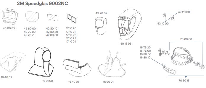 | 40 13 95 | 3M™ Speedglas™ Laskap 9000 (zonder SideWindows, front, hoofdband, ADF***) | 44 05 00 | 9000 FlexView Ombouwkit (197140 +442000 +441000 +1 beschermruit) |